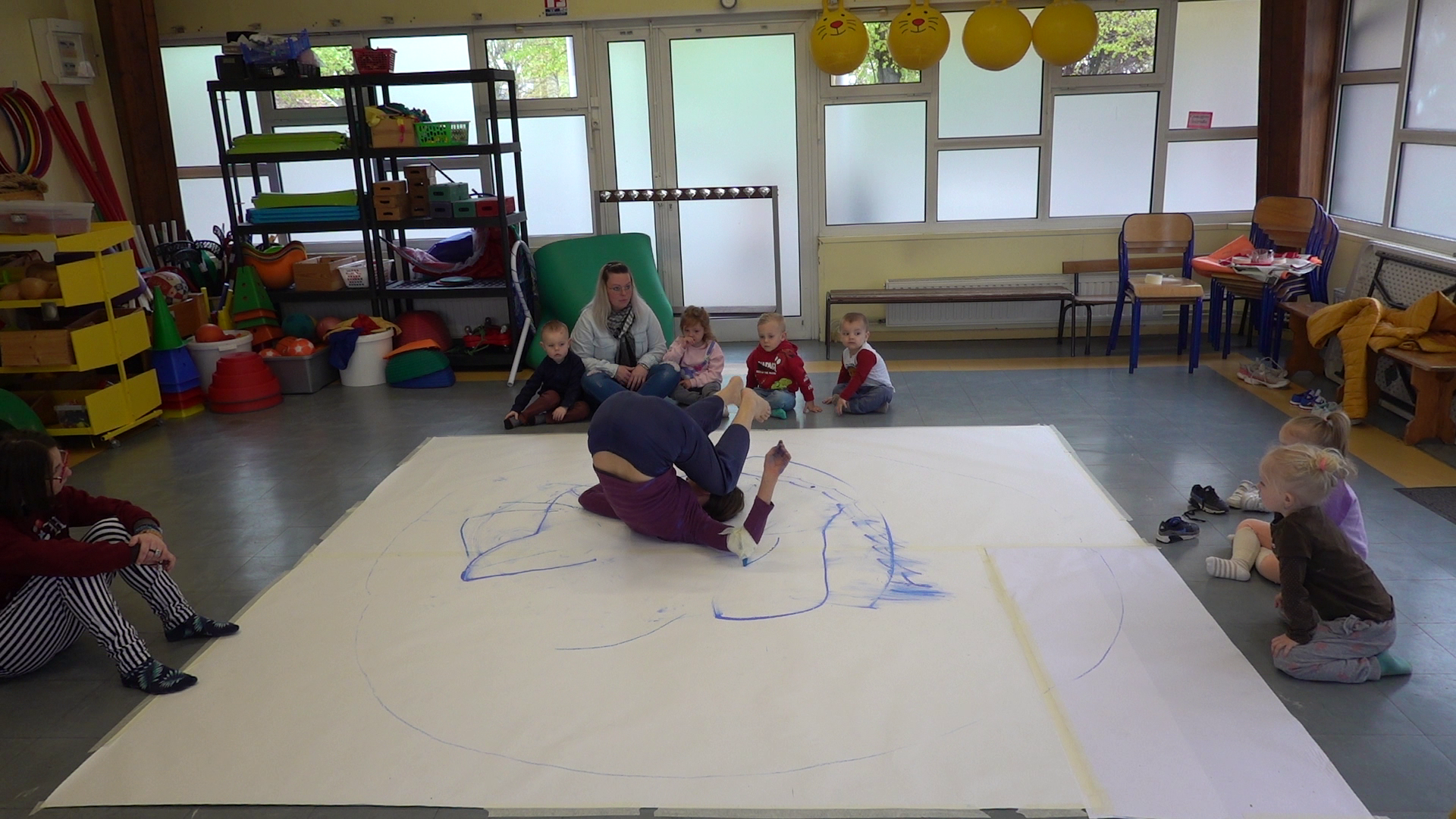 Avec les bambins, on s'est essayé à divers jeux de dessin-mouvement, grandes feuilles à l'horizontale.