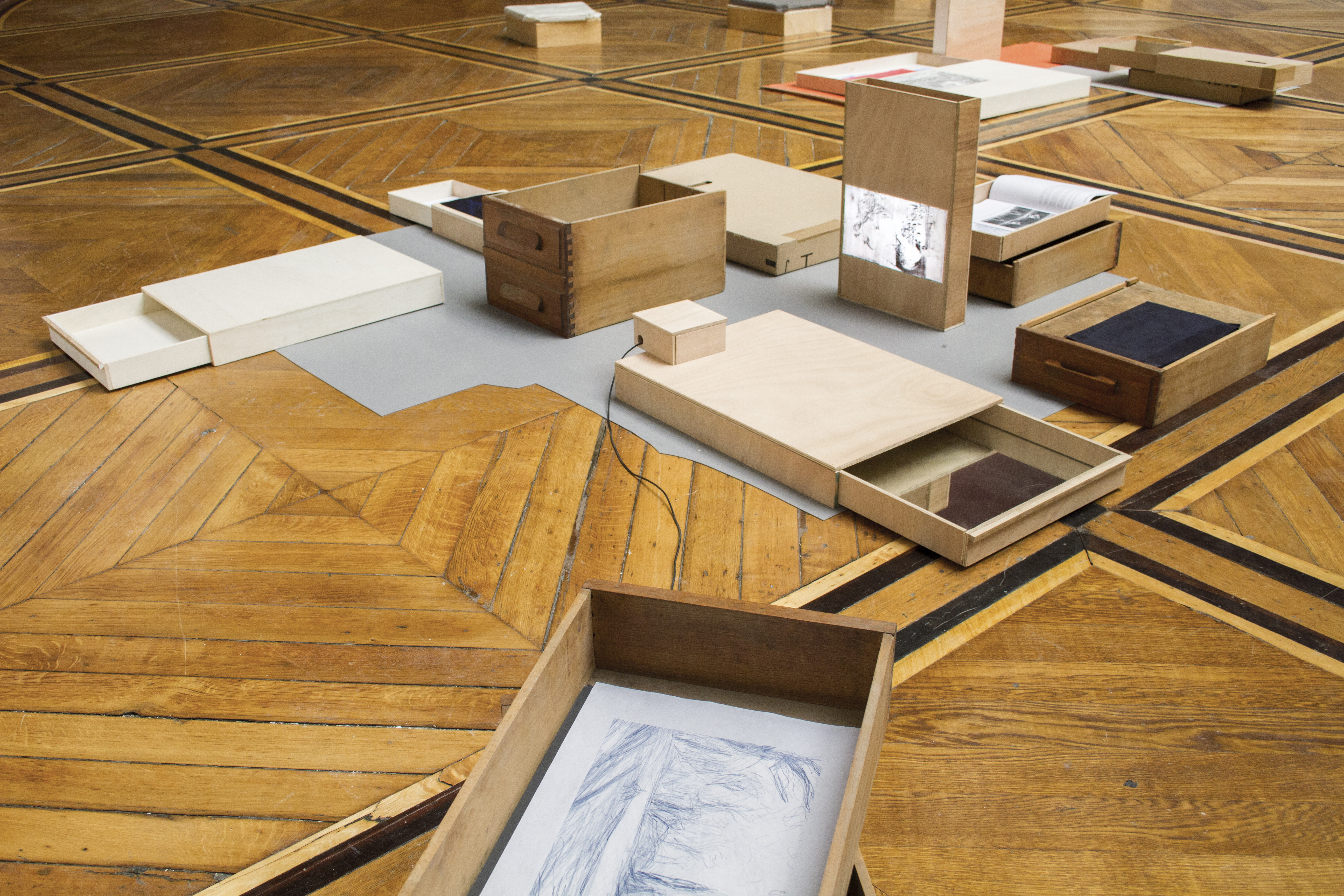 Ils ont circulé dans l'espace principalement occupé par l'un de mes "milieux", l'installation de dessins et d'animations avec tiroirs. J'ai commencé, au fil du temps, à fermer ces tiroirs; dialoguant avec les membres du jury, tantôt yeux fermés, tantôt yeux ouvert.