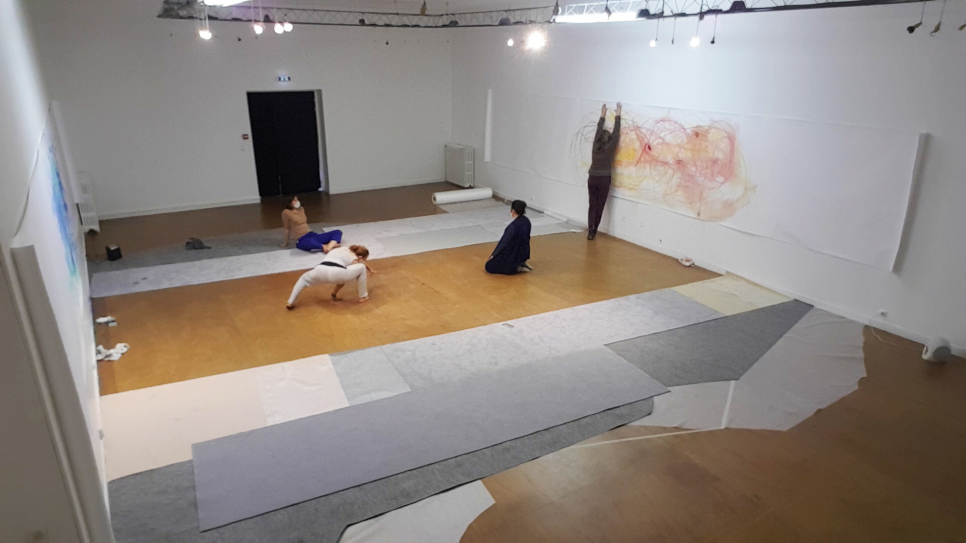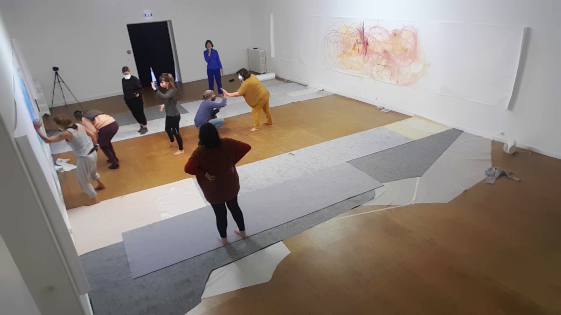 Face à l'impossibilité d'ouvrir la galerie, nous formons un groupe de performeurs improvisés, constitués d'habitants a priori non artistes, pour pratiquer de façon suivie un jeu de dessin avec les tuning scores de Lisa Nelson. Groupe divers: jeunes salarié.es, retraité.es, demandeur d'asiles...nous explorons ensemble: